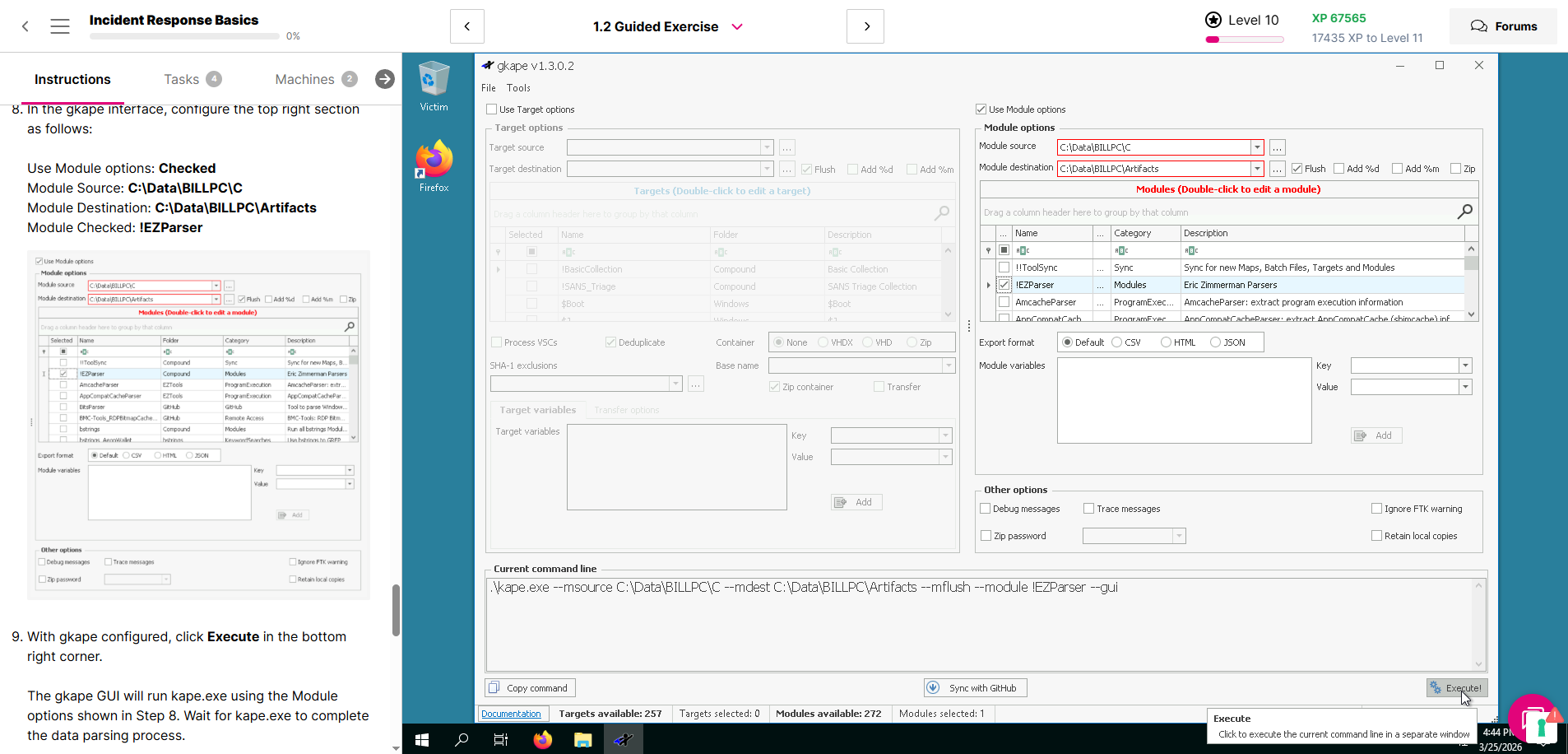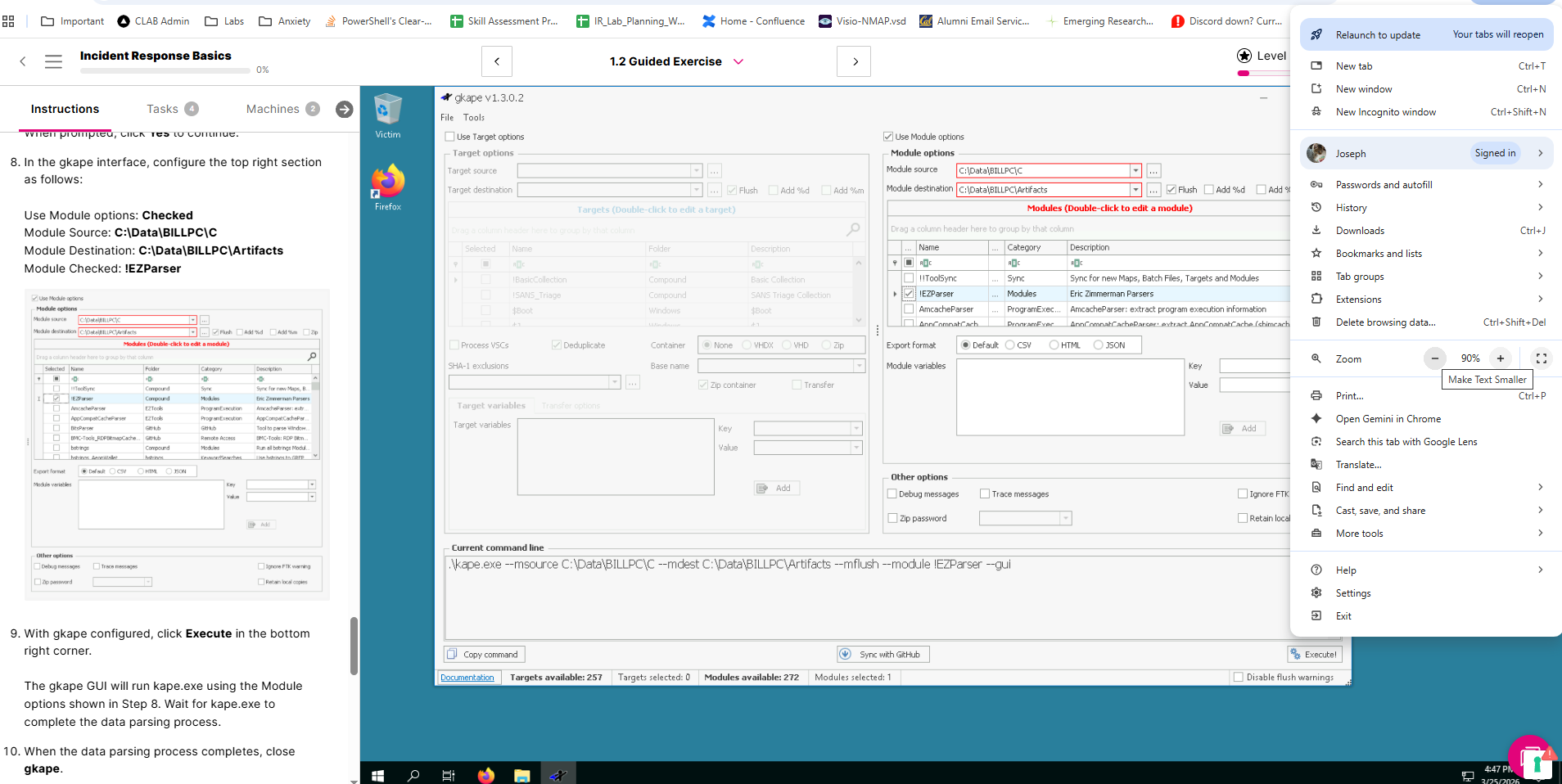 Incident Response Basics contains an exercise 1.2 Guide Exercise, and this is not working.