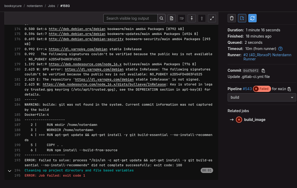 I am trying to complete Part 2. When I run the pipeline, it fails on the stage, “build_image”. I’ve re-run it several times and reloaded the lab with identical results. Here is a screen grab from job.log. Any thoughts?