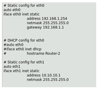 Another common issue is that while it’s shown clearly in the lab screen caps, we don’t say explicitly to uncomment auto eth0 and auto eth1. If these are left commented out , the interface will not come up on reboot.