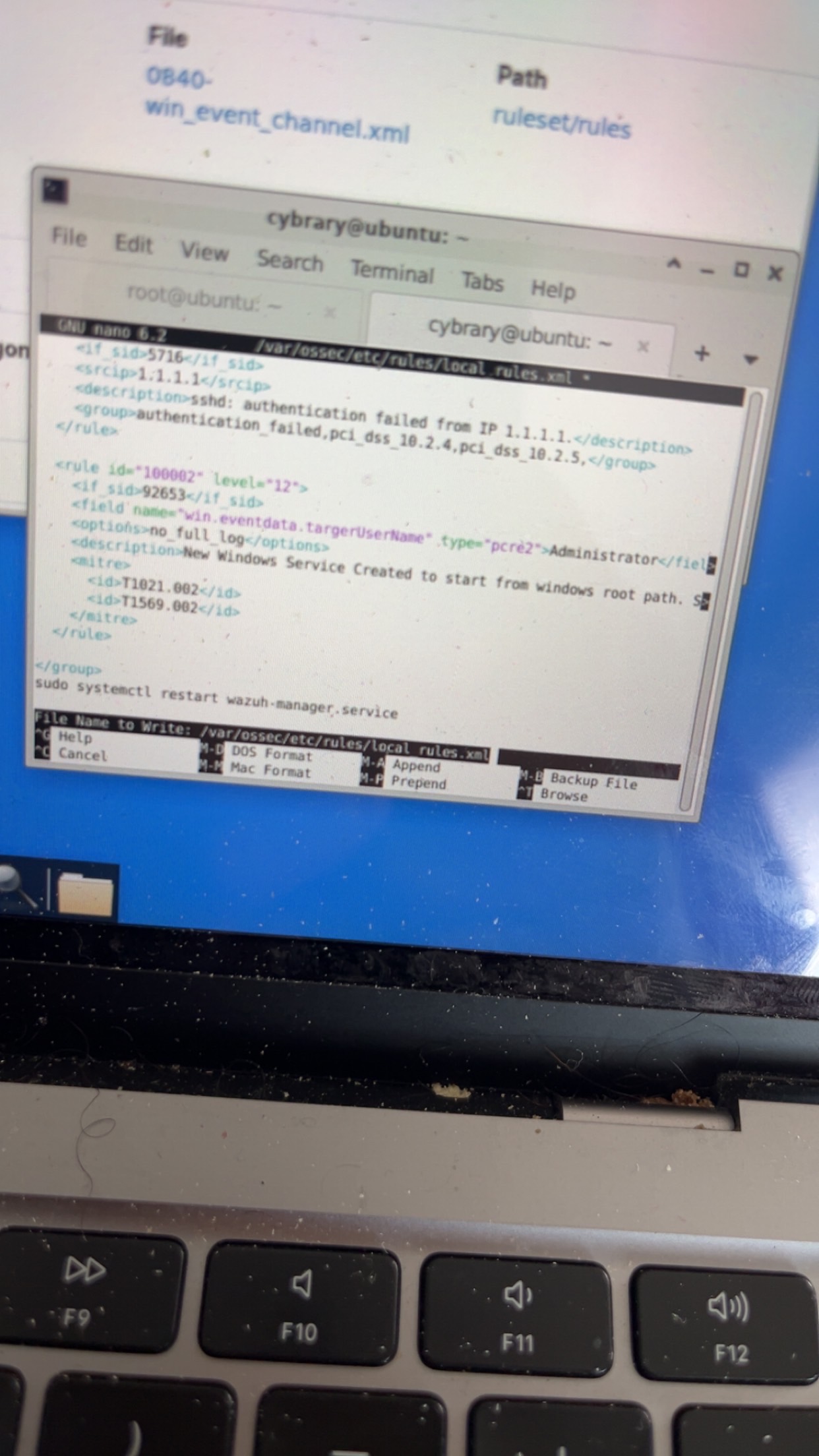 "In nano, press CTRL-o to save the new local rule.