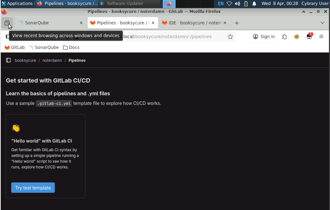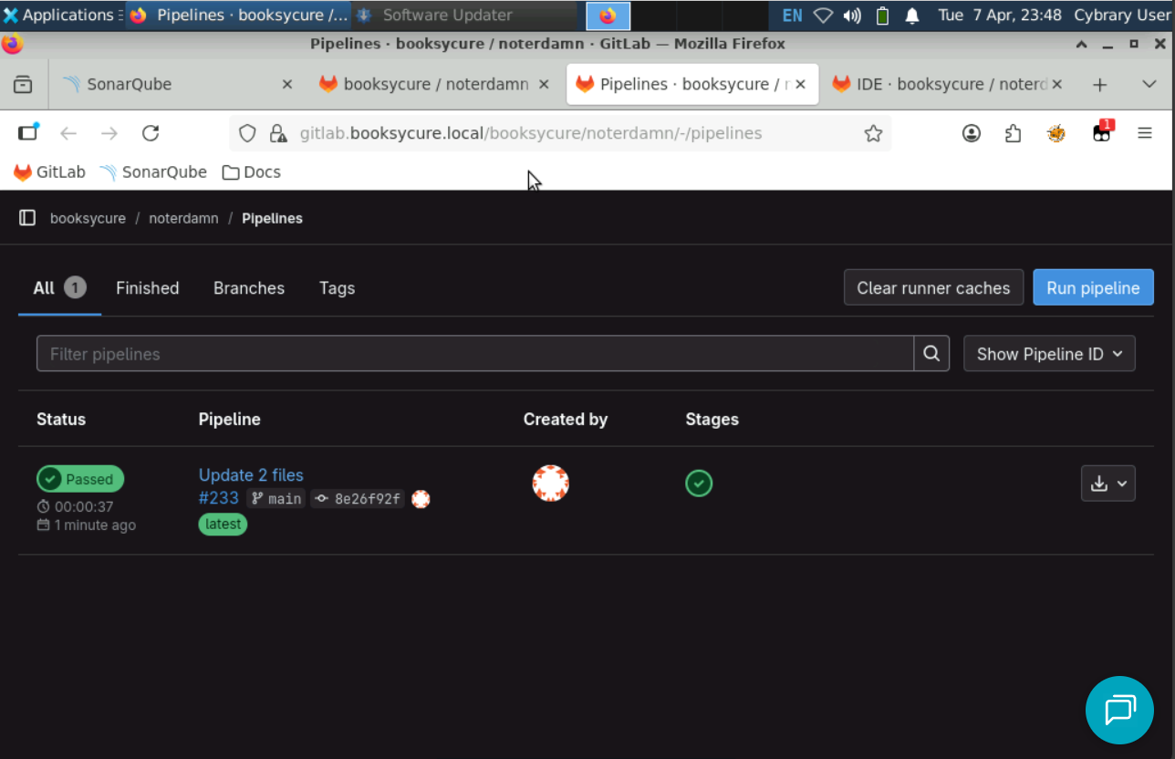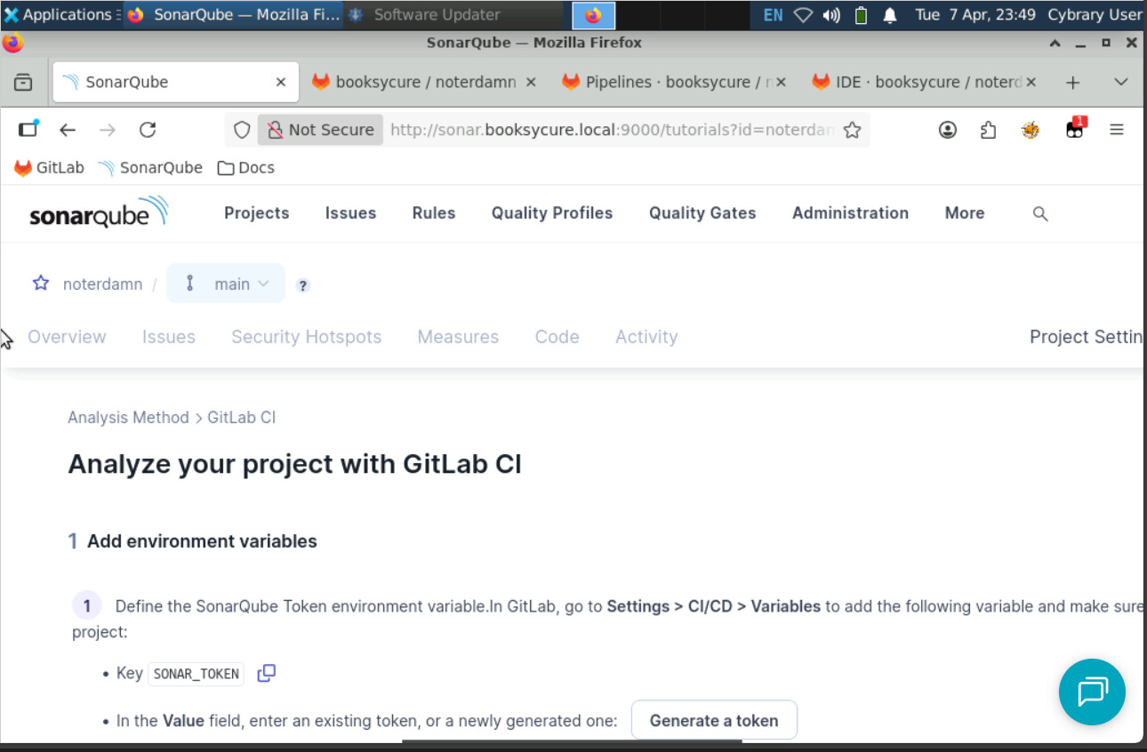 What do you see in your SonarQube Noterdamn project after running your GitLab pipeline? I want to get an idea of exactly what this failure looks like. For example, in my current session, if I navigate to the Noterdamn project in SonarQube after a successful run, I see this: