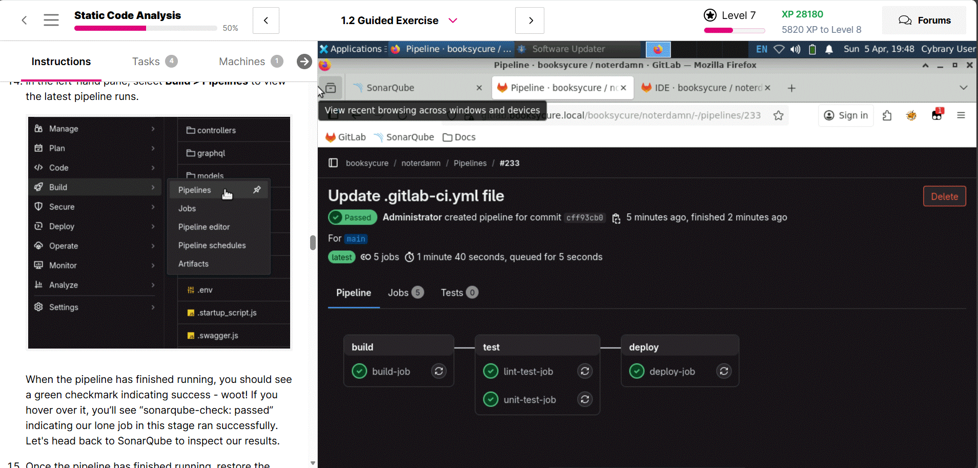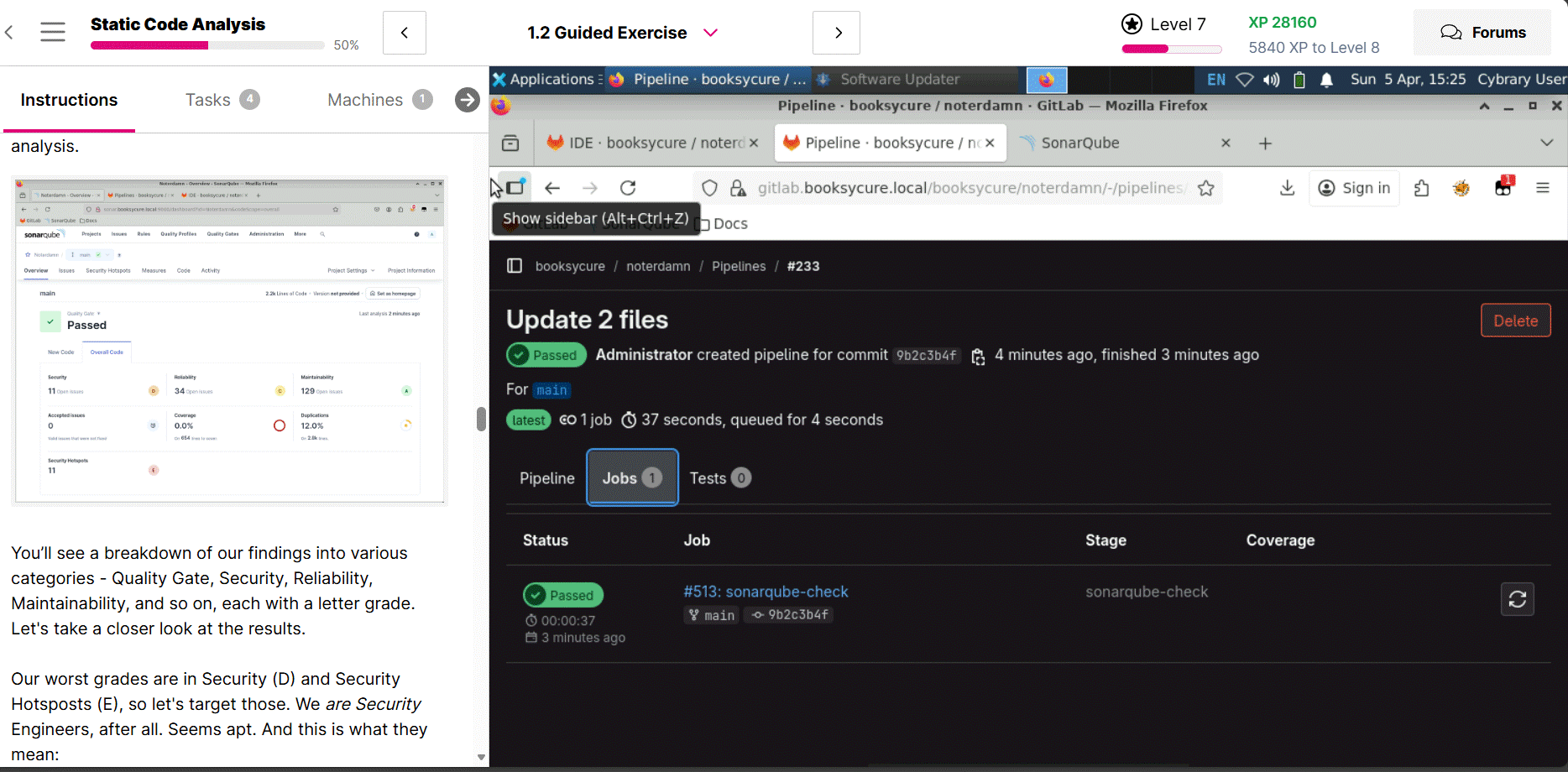 I have restarted this lab 3 or 4 times. I can successfully run the gitlab pipeline, but it never talks back to SonarQube.. So step 15 never shows that it passed in the overview. Am I missing a step?