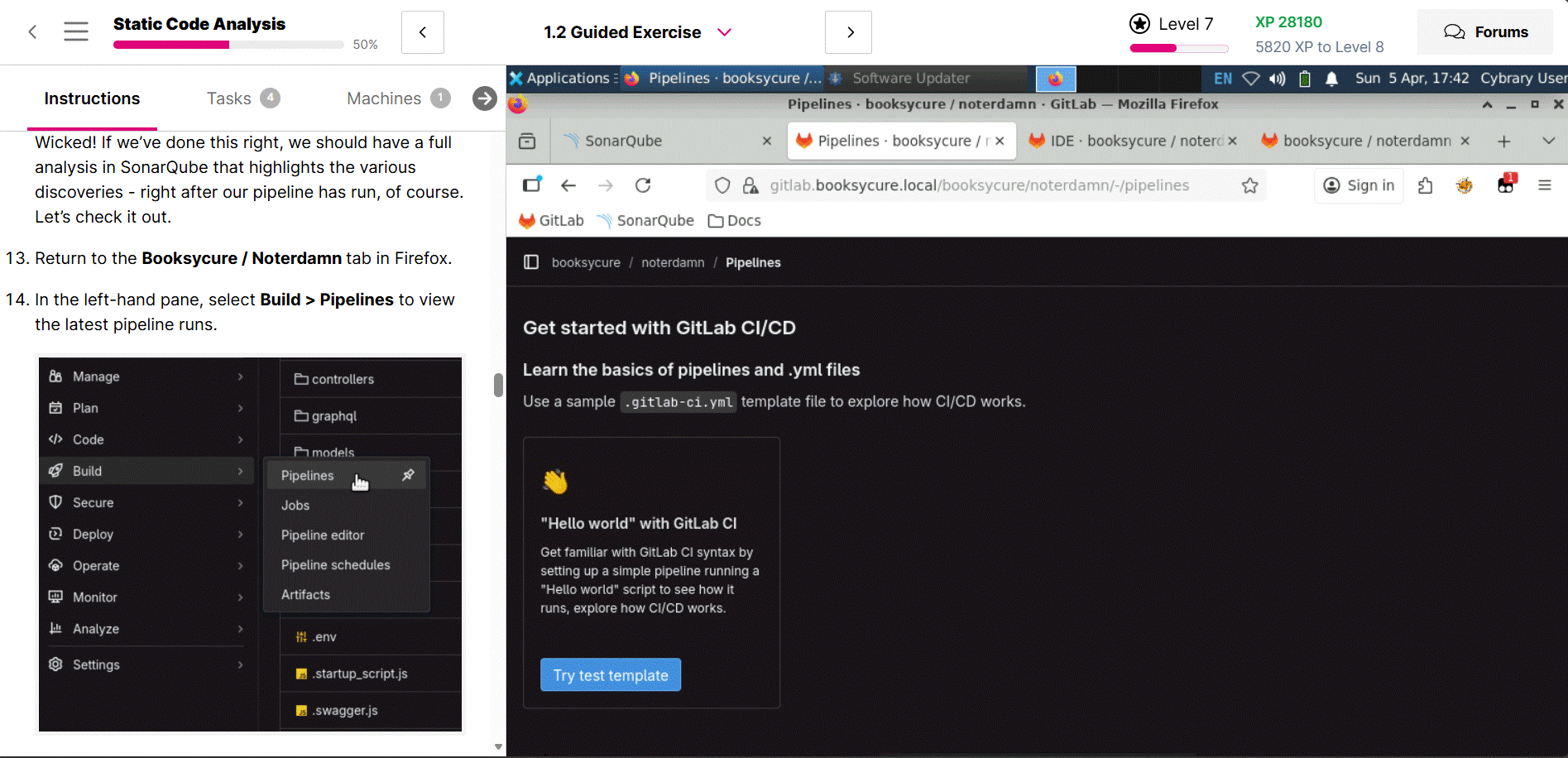 NOTE: In this run, make sure to follow the steps exactly. I see you used the .gitlab-ci.yml test template at one point, indicated by the additional