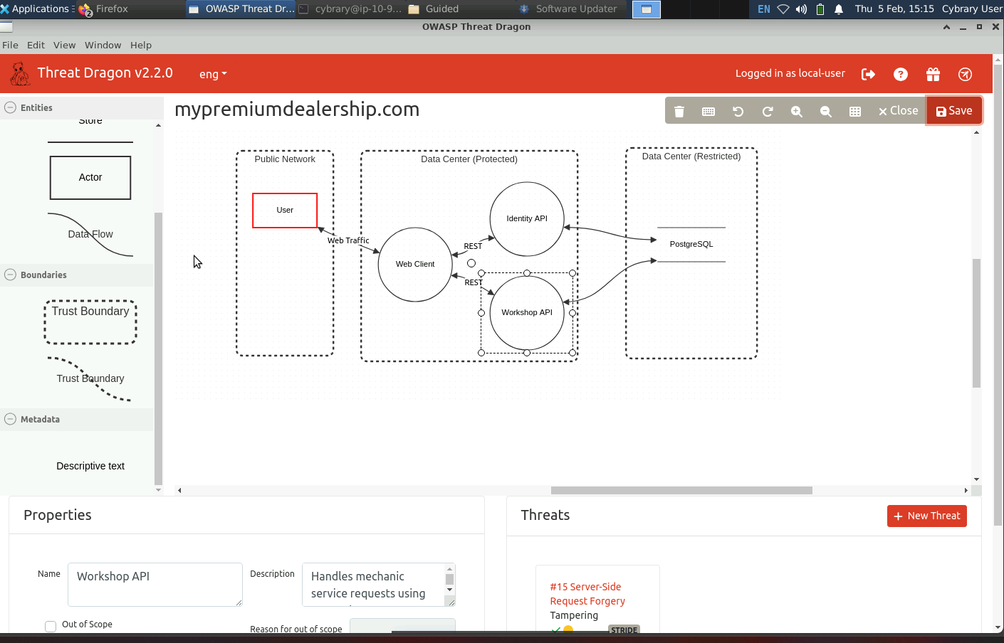 Remember there is a User threat, a Web Traffic threat, and a Workshop API threat (that you later mitigate).