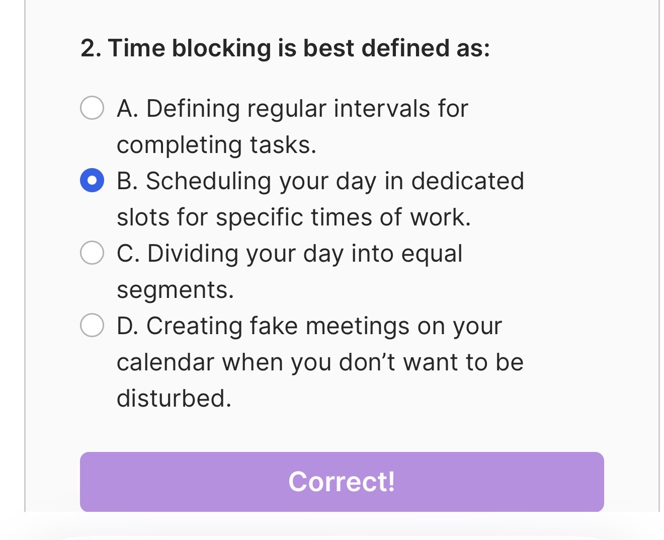 Time Management Module, Section 1.4, Quiz, Q2, Option B