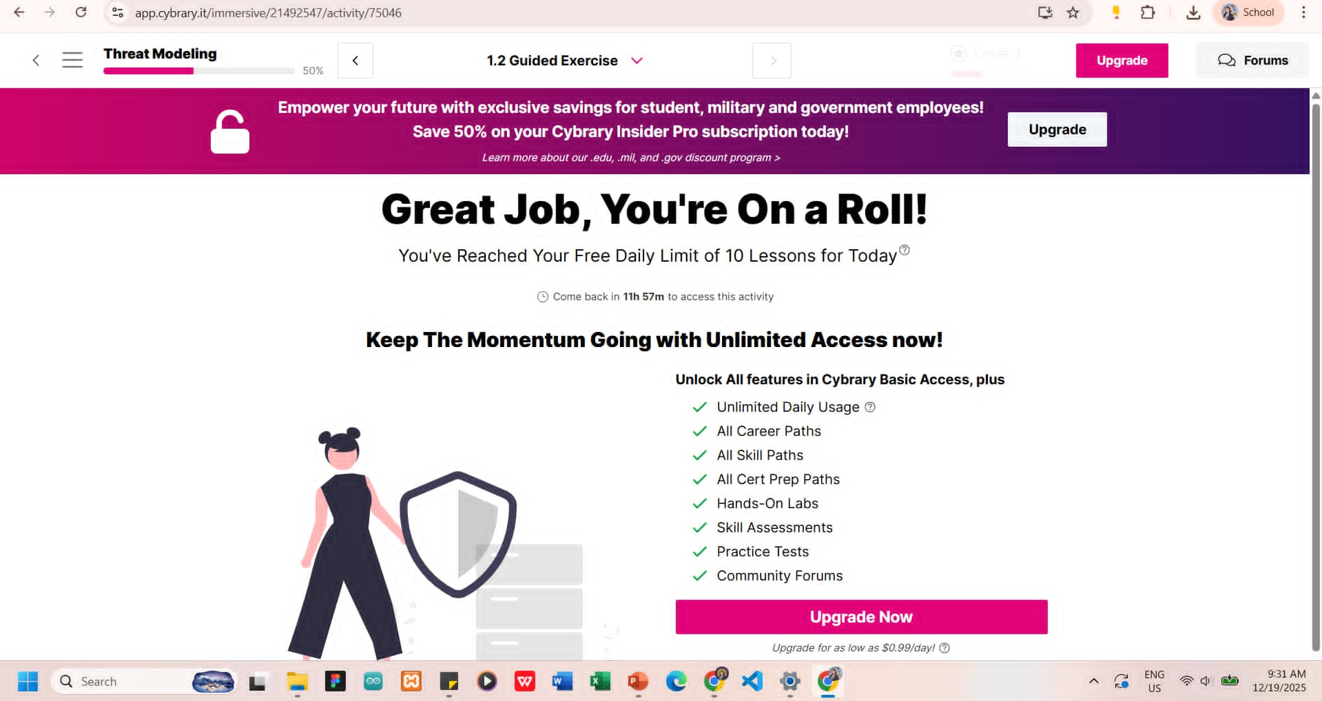 I hit the free daily lesson limit while actively answering a guided exercise, not idling. I respected the system, waited the entire cooldown period shown, and returned exactly as instructed to resume my work. When I refreshed the page, with only a few minutes remaining the platform reset my cooldown to another 8+ hours. That is unacceptable. This is not a “learning limitation”; it is a punitive and poorly designed system that wastes users’ time and breaks study momentum. Refreshing a page should never restart a completed cooldown. That behavior feels manipulative, disrespectful, and intentionally frustrating for free users. I carefully planned my study time, and your platform invalidated it in seconds. Time is valuable, and this experience made it clear that Cybrary does not respect that. If this is intentional, it’s a terrible user experience. If it’s a bug, it’s a serious one that needs immediate fixing. Either way, this interaction left me angry, discouraged, and questioning whether this platform actually supports learners or simply pressures them through frustration.